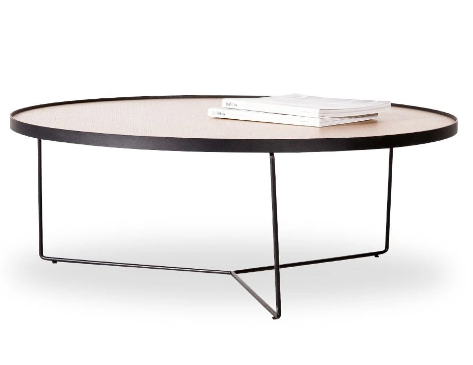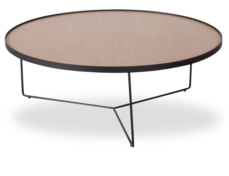Diameter : 900mm, Height : 280mm, Material : European Oak Veneer / Matt Black Powdercoated Steel, Manufacturer : Bent Design