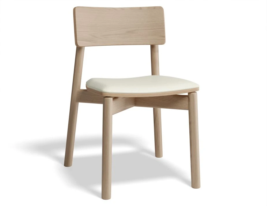 The frame is made of natural American ash, providing a warm and inviting look to the chair.
