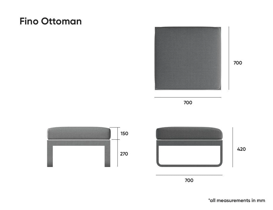 Measuring W: 70cm x H: 42cm x D: 70cm, this ottoman is the perfect size for providing extra seating, a footrest, or even a temporary table. The dark grey cushions made of polyester texteline outdoor fabric are both comfortable and practical, providing a cozy seating experience while being easy to clean and maintain. This ottoman’s modular design allows for easy customization and flexibility in arrangement, making it a great addition to any office or commercial environment. The sleek and modern design adds a touch of sophistication to any space while also providing practical seating options. Use it in waiting areas, break rooms, or outdoor patios, and create a comfortable and stylish seating area that fits your specific needs. The Fino Ottoman with Charcoal Frame and Dark Grey Fabric is sure to impress your guests while providing them with a comfortable and stylish seating option that will last for years to come.