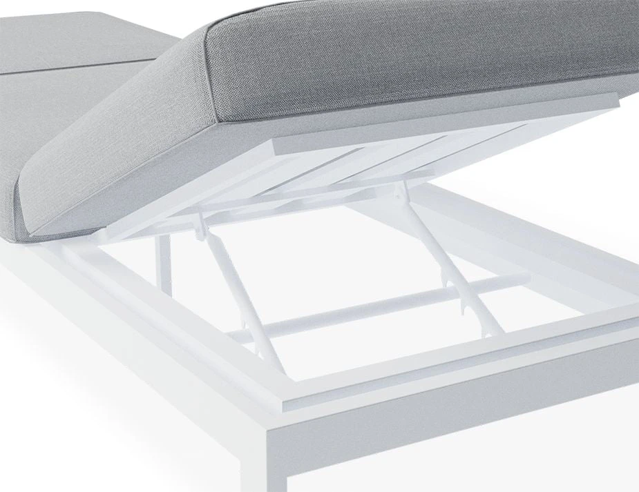 The Fino Outdoor 3-Seater Sunlounge in Matt White Frame / Light Grey Fabric is a perfect outdoor seating option for any office or commercial space.