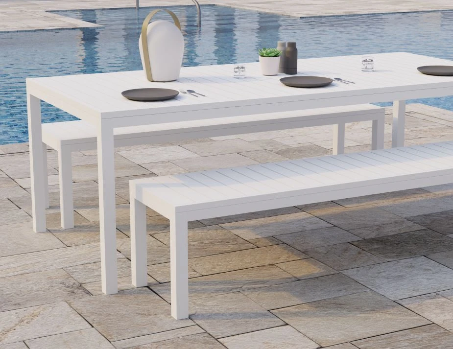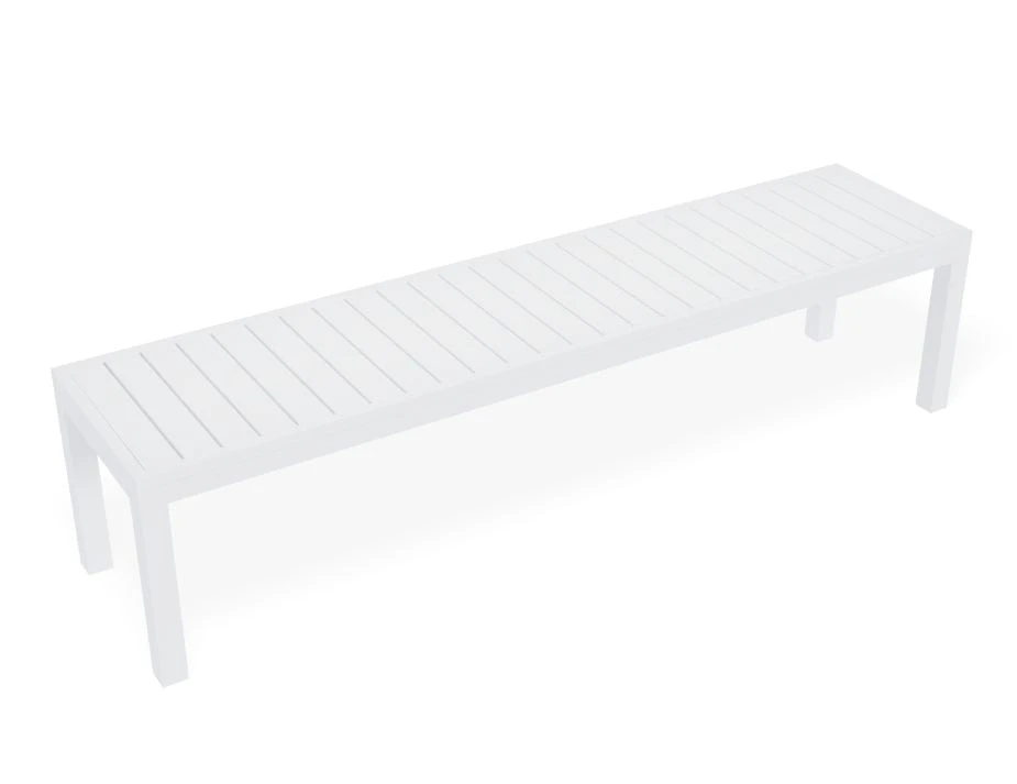 The bench seat is 45cm wide and 45cm high, providing a comfortable height for seating while also serving as a functional surface for placing items. The Halki bench seat is constructed from durable powder-coated aluminum, finished in a sleek matt white color. Designed by Bent Design Studio, this bench seat is part of the Halki range of products, making it a great addition to any existing Halki furniture collection. The bench seat is suitable for indoor and outdoor use, making it a versatile option for any commercial project. With its durable construction, stylish design, and functional features, the Halki bench seat is a must-have for any commercial project manager, interior designer, or furniture outfitters looking to furnish their space with high-quality seating solutions.