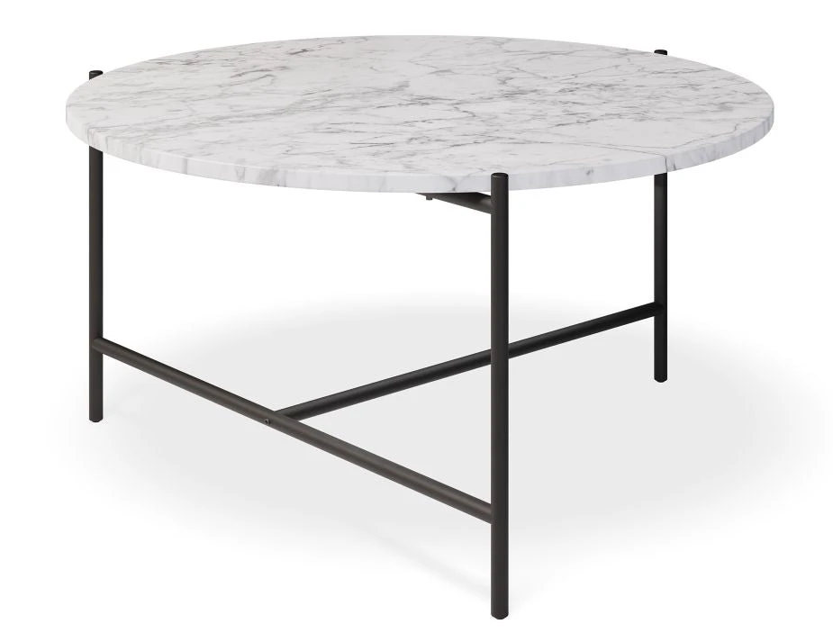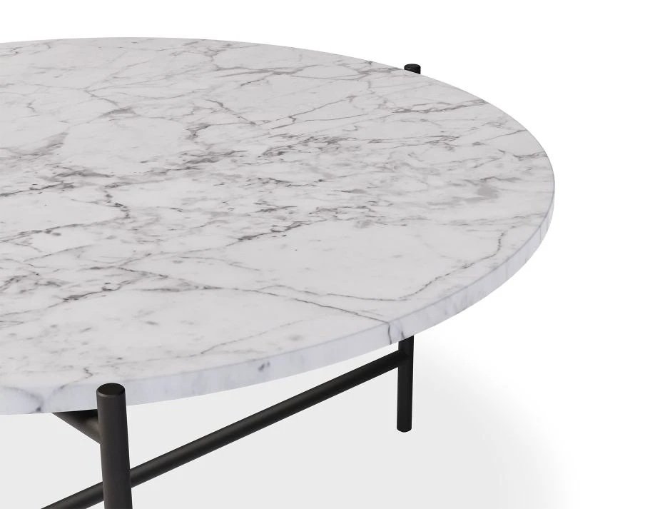 The legs of the Nexus Marble Coffee Table are made from solid steel, coated in a matt black powder finish for a sleek, modern look. Designed by Bent Design Studio, this coffee table is not only practical, but also serves as a statement piece, making it a must-have for commercial project managers, interior designers, and furniture outfitters looking to make a lasting impression on their clients. The combination of solid white Carrara marble and black powder-coated steel makes this coffee table a durable and timeless piece that will last for years to come.