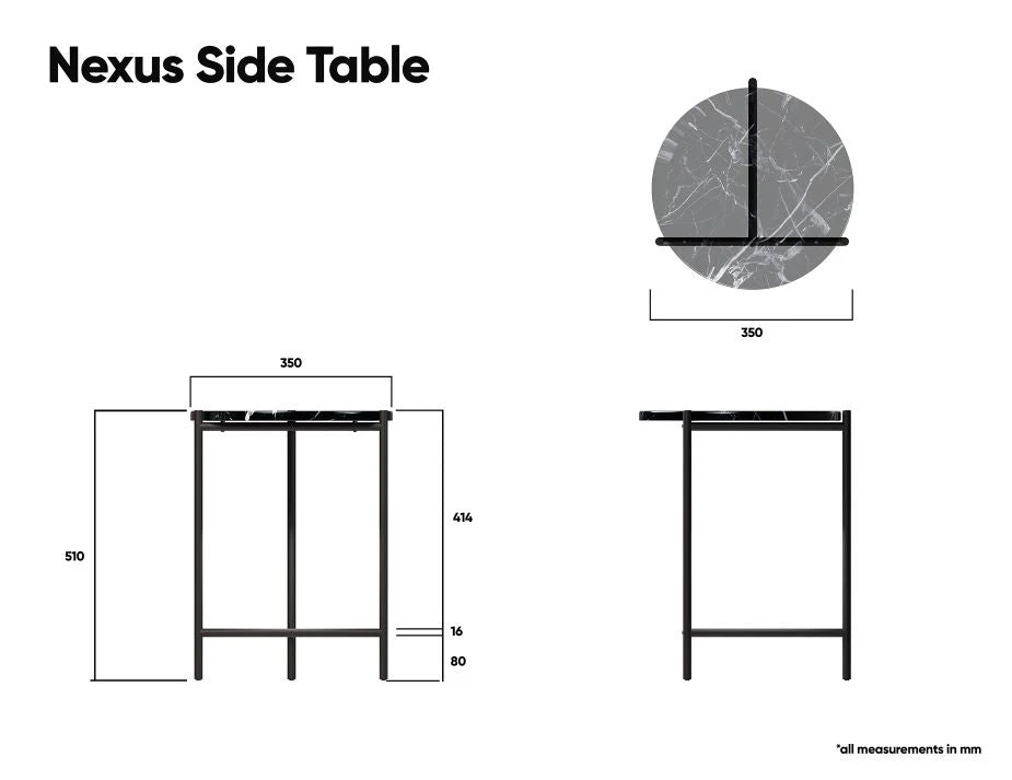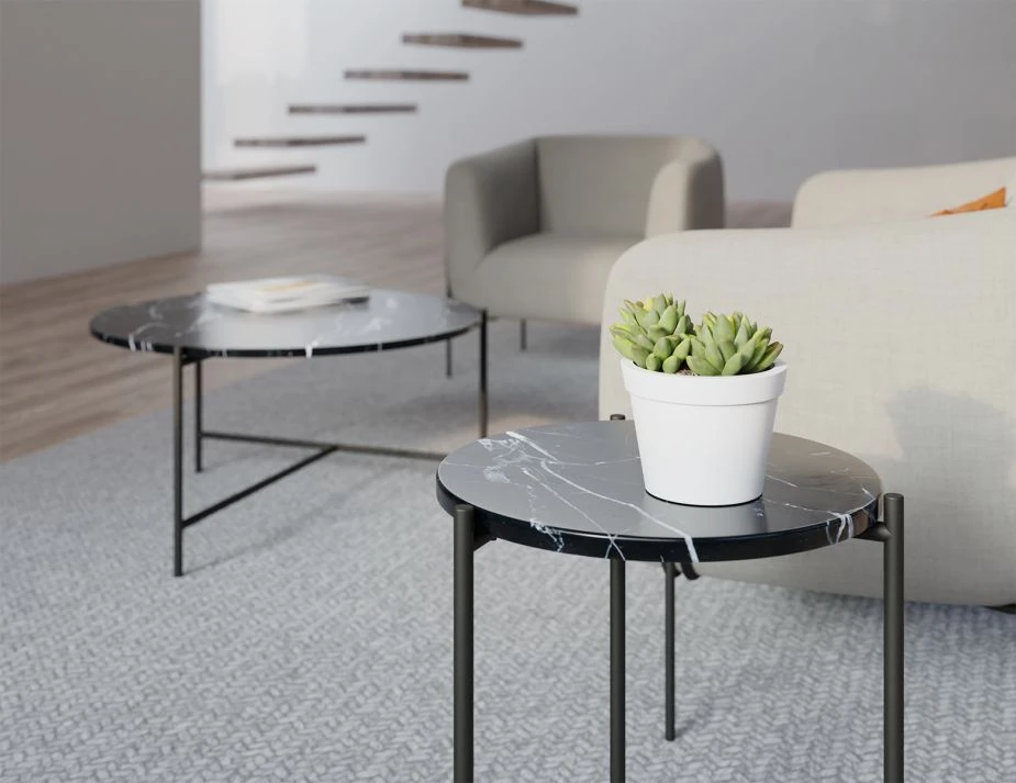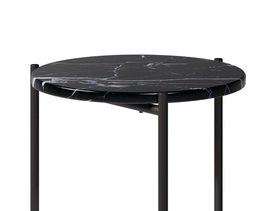 The top is smooth and sleek, showcasing the beauty and natural patterns of the marble. The base of the table is made from matt black powder coated solid steel, adding a modern touch to the overall design. The combination of the natural marble and the matte black steel creates a beautiful contrast that will complement any interior design style. The Nexus Marble Side Table is not just a piece of furniture, but also a work of art. It is the perfect addition for commercial outfitters and commercial furniture suppliers who want to offer their clients unique and high-quality pieces. The table’s solid construction and attention to detail make it a durable and long-lasting addition to any space. The table’s elegant design will elevate the look of any room, making it a great investment for both commercial and personal use. Whether used as a standalone accent piece or paired with other furniture, the Nexus Marble Side Table is sure to be a conversation starter.