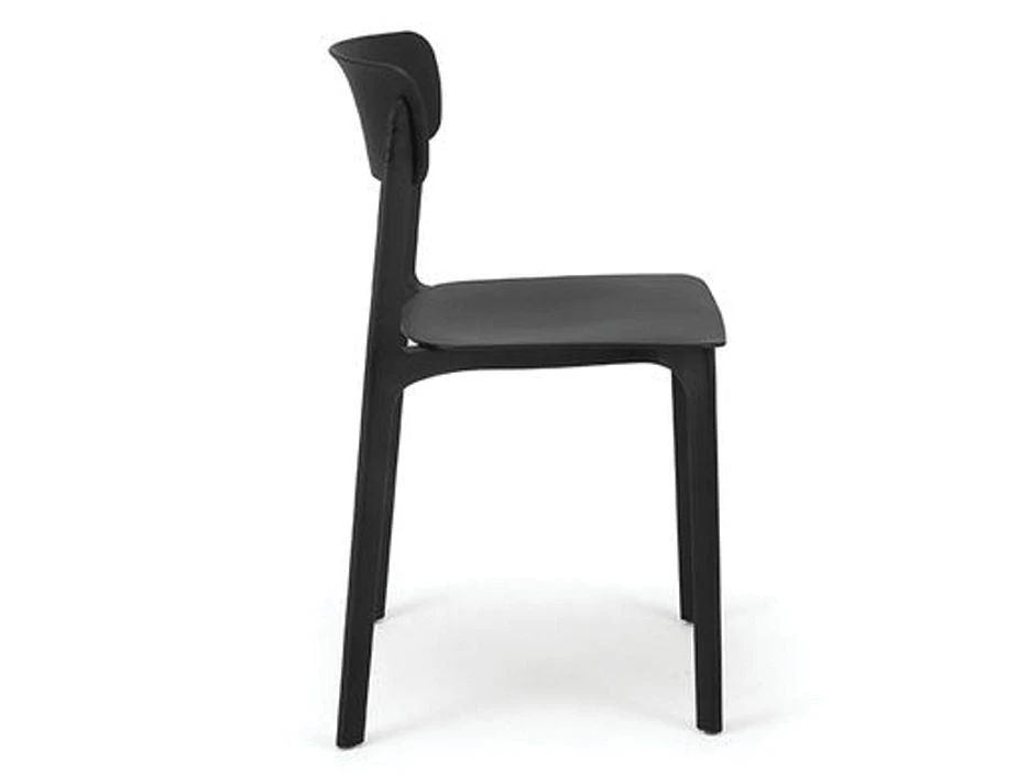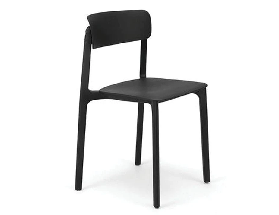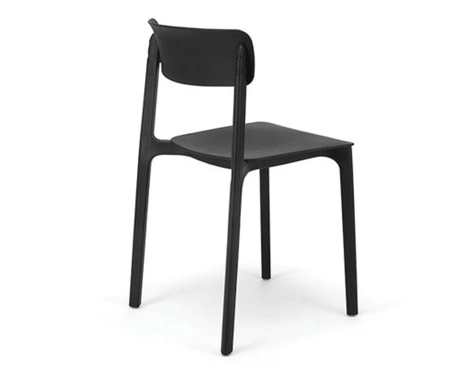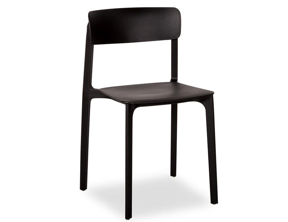 Seat Height: 45cm, Overall Size: 48cm W x 79cm H x 48cm D, Frame Colour & Material: Black polypropylene, Assembly: None, Stackable: Yes, Suitability: Indoor/Outdoor