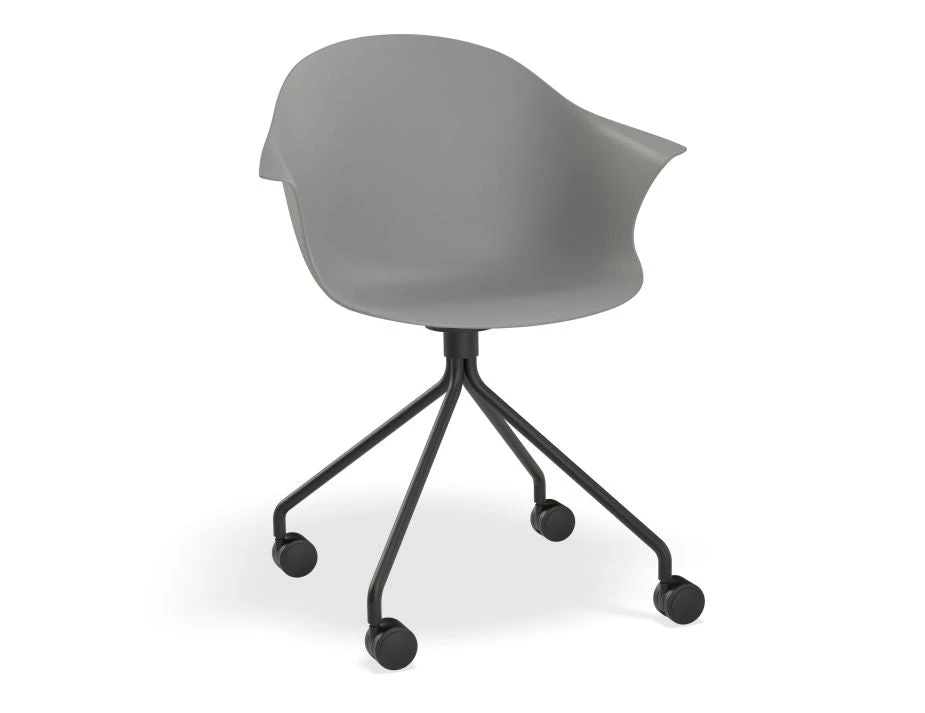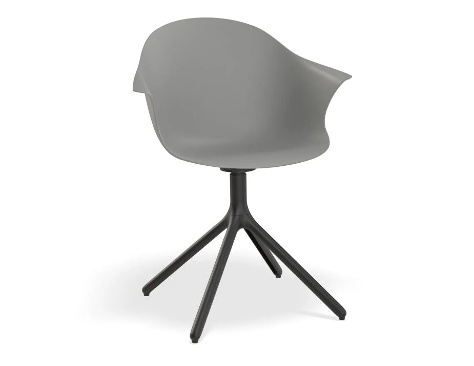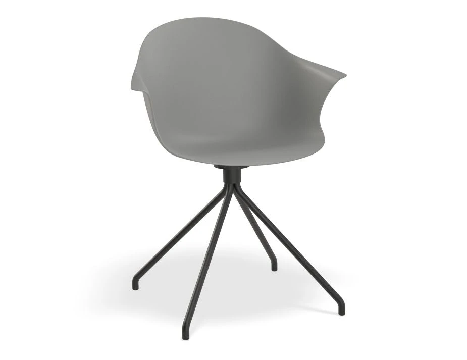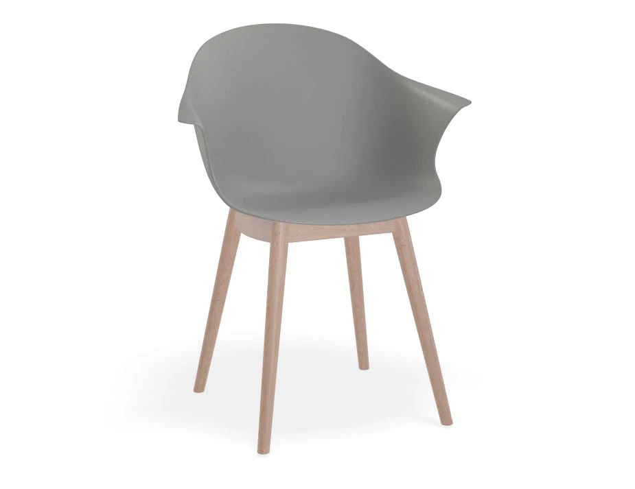 LEVEL Pebble Armchair Grey With Shell Seat – 4 Post Base With White Legs