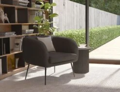 Make your guests feel right at home with the vegan leather Pebble Chair Black Upholstered Vintage Seat.
