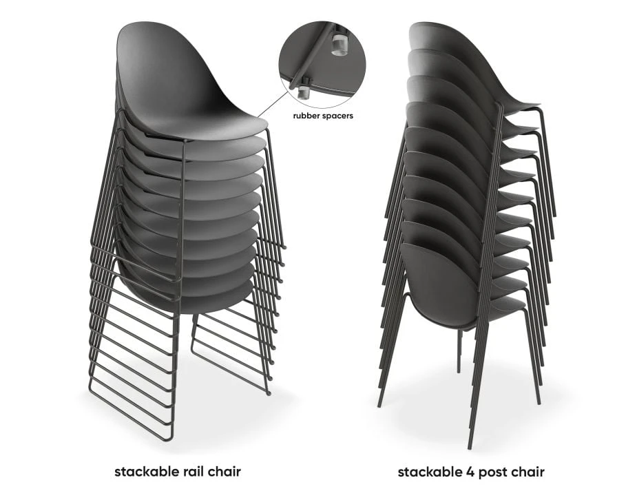 The seat dimensions of 45cmH x 45cmW, seat material of injected polypropylene, and a black seat color provide comfort and style for any office space. With a weight rating of 150kg SGS rated, this chair is built to last.