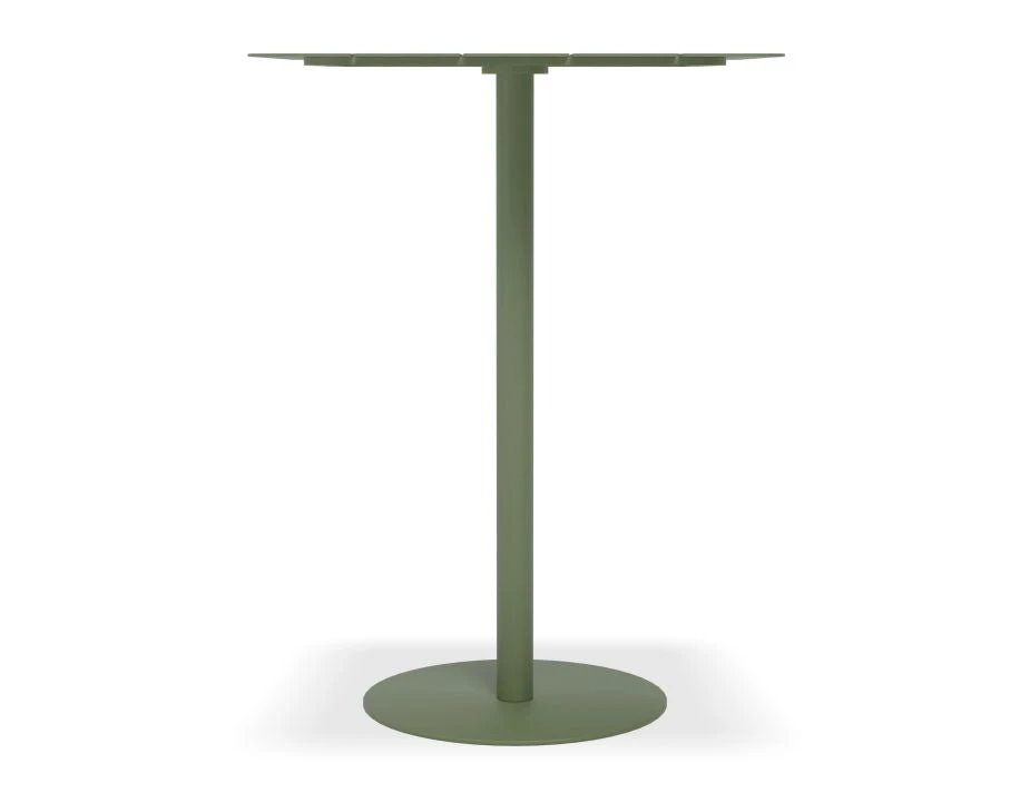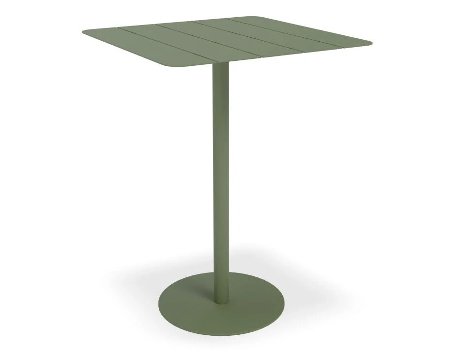 The green tabletop is available in two sizes, 65cm x 65cm and 75cm x 75cm, offering ample space for guests to place their drinks or work on a laptop. Constructed from premium quality materials, the Roku High Bar Table is built to last. The frame is made of a durable aluminum powder-coated in a striking matt green finish, adding a pop of color to any space.