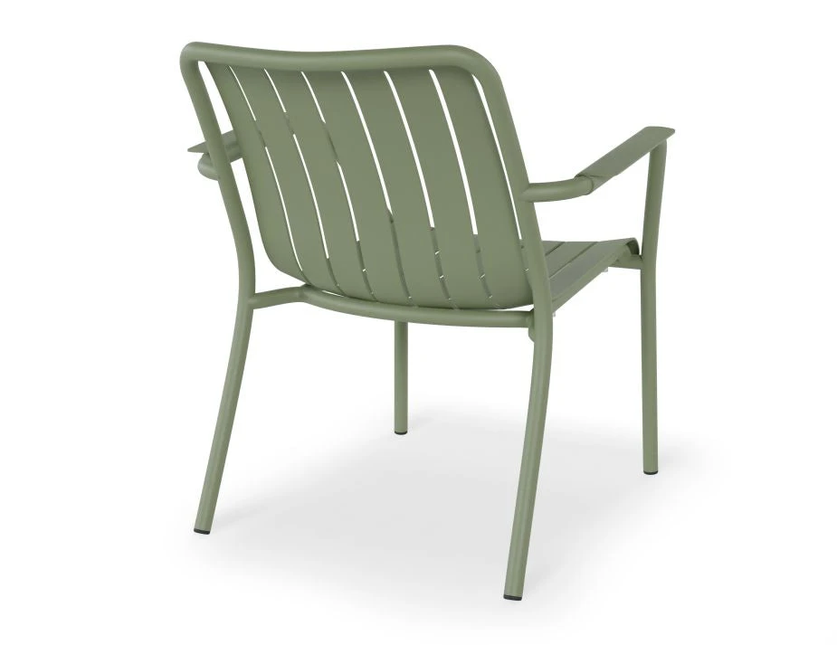 The frame of this chair is made of durable and sturdy aluminum powder coated in a stylish matt green finish, making it both functional and aesthetically pleasing. Designed by the renowned Bent Design Studio, the Roku Outdoor Lounge Chair boasts a sleek and contemporary design that is sure to impress. The chair weighs in at approximately 5.5kg and is equipped with nylon slides for added protection, ensuring it can withstand the elements for years to come. Assembly is not required for this chair as it is part of the Roku outdoor furniture range, making it a convenient choice for any commercial project manager, interior designer or furniture outfitter looking for a ready-to-go outdoor lounge chair.