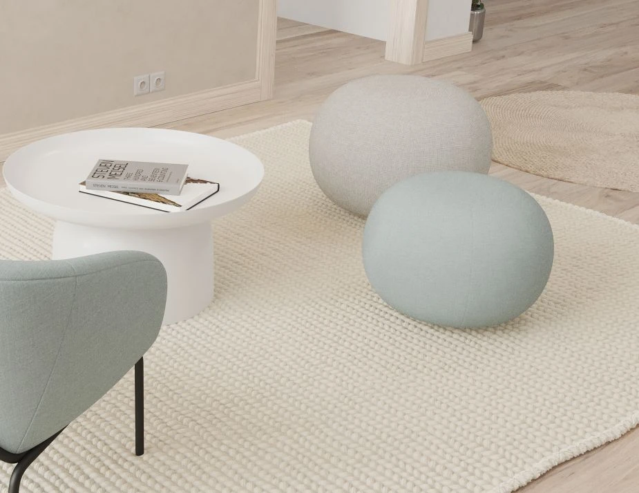 The Small Ronde Pouf in Sky Blue is the perfect addition to any office lounge, offering style and comfort for guests.