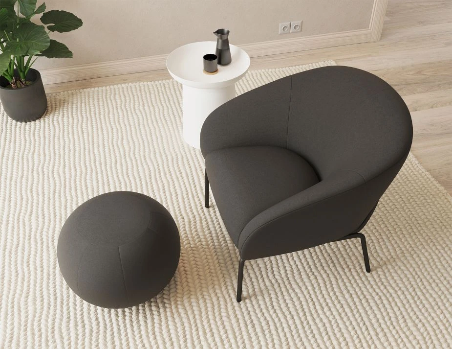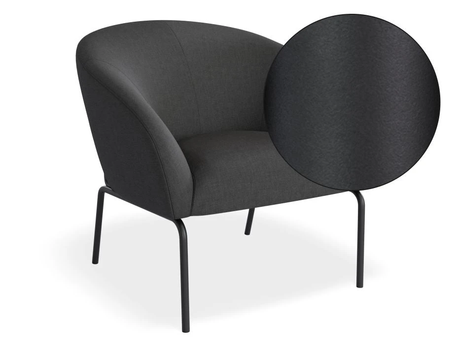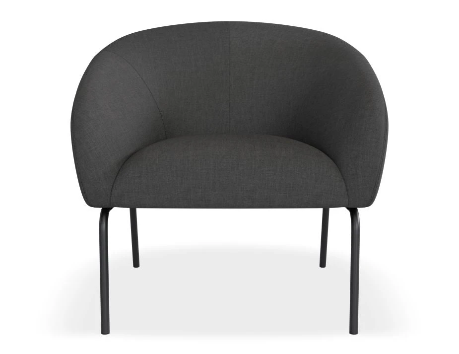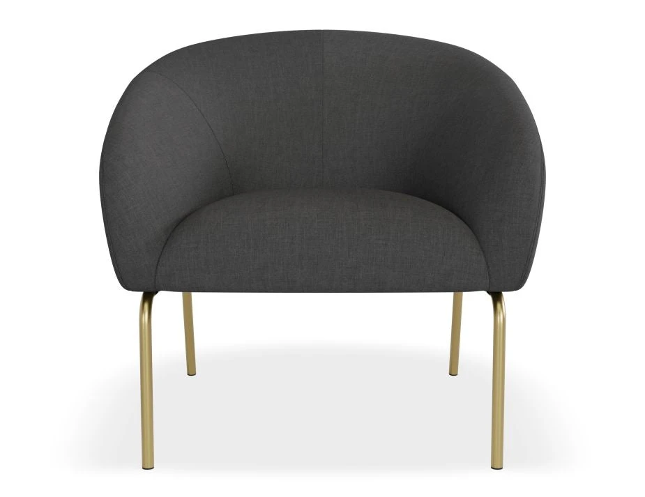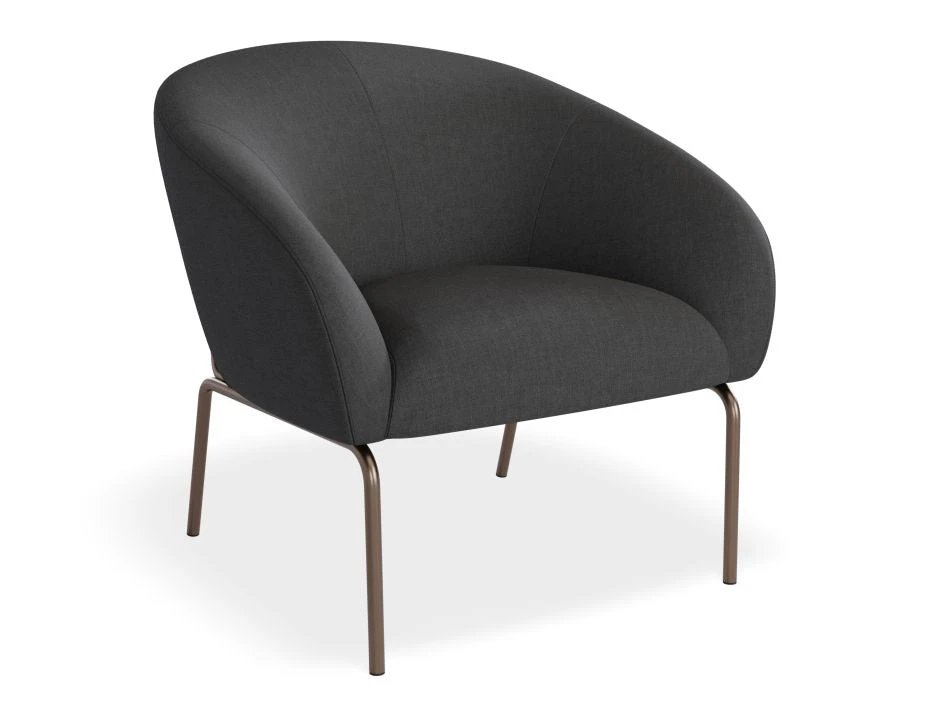 With its sleek storm grey colour and sturdy stainless-steel legs in three different finishes (Brushed Matt Bronze, Brushed Matt Gold, and Matt Black), this grey lounge chair offers a touch of sophistication to any space.